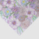 Ce papier tissulaire présente un design floral dessiné à la main, à la fois complexe et élégant. Les fleurs, représentées dans des teintes douces de violet, de bleu, de vert et de rose, sont rendues avec un tel détail que chaque pétale et le centre sont clairement reconnaissables. L'arrière - plan mauve doux sert de toile parfaite, faisant ressortir la vitalité des couleurs et donnant au design une sensation de profondeur. Le mélange de fleurs entièrement colorées et de fleurs surlignées ajoute un contraste dynamique, créant un effet visuel superposé à la fois sophistiqué et apaisant. Ce papier de tissu transcende son objectif pratique, devenant un morceau d'art décoratif qui pourrait facilement agrémenter n'importe quel cadre avec sa beauté sereine.