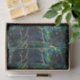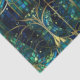 Élégant céleste émeraude vert arbre faux vitrail motif avec accents or avec arrière - plan bleu et vert