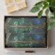 Élégant céleste émeraude vert arbre faux vitrail motif avec accents or avec arrière - plan bleu et vert