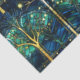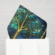 Élégant céleste émeraude vert arbre faux vitrail motif avec accents or avec arrière - plan bleu et vert