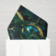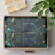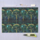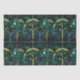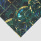 Élégant céleste émeraude vert arbre faux vitrail motif avec accents or avec arrière - plan bleu et vert