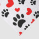 Dessins d'empreintes de pattes de chiens et de coeurs rouges dans de nombreuses tailles. Papier de tissu personnalisé. Idée envelopper cadeau pour les personnes de tous âges qui aiment les chiens.