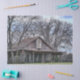 Papier Mousseline En ruines Grange en bois avec Arbres nus environna
