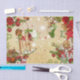 Papier de tissus épemera de Noël vintage avec Poinsettia, ornements de Noël, cadeaux de Noël, bas de Noël, étoiles et Père Noël à la main arrière - plan de papier écrit. Idéal pour vos projets de découpage de vacances.