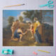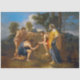 Nicolas Poussin (juin 1594 - 19 novembre 1665) fut le peintre principal du style baroque classique français, bien qu'il ait passé la majeure partie de sa vie professionnelle à Rome. La plupart de ses oeuvres portaient sur des sujets religieux et mythologiques peints pour un petit groupe de collectionneurs italiens et français. Il revient à Paris pour une brève période pour servir comme premier peintre au roi sous Louis XIII et le cardinal Richelieu, mais revient bientôt à Rome et reprend ses thèmes plus traditionnels. Dans ses dernières années, il a donné une importance croissante aux paysages dans ses photos. Son travail se caractérise par la clarté, la logique et l'ordre, et favorise la ligne par rapport à la couleur. Jusqu'au 20e siècle, il est resté une source d'inspiration majeure pour des artistes aussi classiques que Jacques-Louis David, Jean-Auguste-Dominique Ingres et Paul Cézanne. Les détails de la formation artistique de Poussin sont un peu obscurs. Vers 1612, il se rend à Paris, où il étudie sous maitre mineur et termine ses premières oeuvres. Son enthousiasme pour les oeuvres italiennes qu'il a vues dans les collections royales de Paris l'a motivé à se rendre à Rome en 1624, où il étudia les oeuvres de peintres de la Renaissance et du Baroque, surtout Raphael, qui eut une influence puissante sur son style. Il a été ami de plusieurs artistes qui partageaient ses tendances classifiantes et a rencontré des patrons importants, comme le cardinal Francesco Barberini et l'antiquaire Cassiano dal Pozzo. Les commissions reçues par Poussin pour des peintures modestement à l'échelle de sujets religieux, mythologiques et historiques lui ont permis de développer son style individuel dans des oeuvres comme La Mort de Germanicus, Le Massacre des Innocents, et le premier de ses deux séries de Sept Sacrements. Il fut persuadé de retourner en France en 1640 pour être le premier peintre du roi, mais, insatisfait de l'énorme charge de travail et des intrigues de la cour, retourna définitivement à Rome après un peu plus d'un an. Parmi les oeuvres importantes de ses dernières années sont Orion Blinded Searching for the Sun, Paysage avec Hercules et Cacus, et The Seasons. Citation : Wikipedia