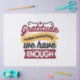 Celebrate the power of gratitude with this inspirational Christian quote: 'Gratitude makes everything we have enough.' A beautiful faith-based design for decor, apparel, and gifts. #Thankfulness #Grateful
