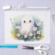 Illustration de fantôme charmant entouré de fleurs aquarelles sur un design de mouchoir en papier pleine page. Une option douce et fantaisiste pour l'emballage d'Halloween, les projets de bricolage, le journaling de junk ou le découpage. Le style de grande image unique le rend particulièrement accrocheur.