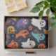Flottez dans la saison éffrayante avec ce papier de tissus fantaisie, avec une parade de mignons fantômes en blanc, violet, bleu et orange, le tout avec des joues roses et des expressions joyeuses. Le design est complété par des jack-o-lanternes et des étoiles étincelantes, ajoutant une touche parfaite de plaisir d'Halloween à tout cadeau.