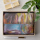 Vibrant, coloré, portrait expressif avec tricorne et hibou, peinture acrylique contemporaine sur toile dans des couleurs jaune or violet inspirée du Faust de Goethe par Bulgan Lumini (c).