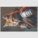 Le chat guerrier est représenté avec une posture majestueuse, sa fourrure est modelée dans des tonalités audacieuses d'orange, de blanc et de noir. Ses yeux verts intenses véhiculent un sentiment de détermination et de courage. Orné d'armures détaillées comprenant à la fois des éléments en cuir et en métal, le chat est prêt pour tout défi. L’arrière - plan foncé à l’éclairage subtil met en évidence les caractéristiques du chat et souligne sa préparation au combat.