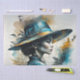 Une femme élégante avec casquette à la campagne, aquarelle moderne