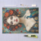 Ce design présente un portrait d'une femme dans le style de Gustav Klimt, présentant une esthétique colorée mais élégante. On y retrouve des touches dorées, des fleurs rouges éclatantes et un paon gracieux qui s'harmonise avec les couleurs du reste. Nous vous conseillons de choisir la bonne taille pour votre projet, allant de petites tailles parfaites pour la création de petits "trésors" à des dimensions plus grandes convenant au réaménagement des meubles, jusqu'à 20x30 pouces