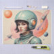 Une représentation élégante d'une femme dans un costume élégant et casque, dressé contre un arrière - plan rose. Le design incarne l'esthétique de l'ère atomique, mêlant éléments rétro-futuristes et influences modernes du milieu du siècle. Les roquettes et les motifs célestes abstraits renforcent le sentiment d’optimisme et d’exploration, reflétant la fascination de l’époque pour les voyages spatiaux.