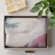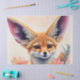Le papier de tissus présente le portrait floral d'une fennec dans l'art botanique sauvage aux couleurs vives. L'adorable petit renard du désert aux oreilles larges est entouré de fleurs de pêche violettes et rosâtres dans une oeuvre d'esthétique douce et féminine.