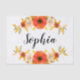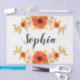 Papier de tissus avec fleurs d'aquarelle de corail sur arrière - plan blanc et texte personnalisable.
