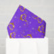 Un luxueux papier de mouchoir de Noël violet et or avec un motif festif de grands tourbillons et boucles dorés, des flocons de neige dorés, des étoiles de Noël dorées et de petites étoiles blanches scintillantes, le tout sur un arrière - plan violet/bleu brillant pour ajouter une touche sophistiquée et élégante à votre cadeau enveloppant cette saison des Fêtes.