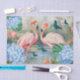 Papier Mousseline Flamant rose et papillons d'aquarelle tropicale