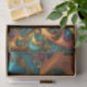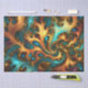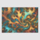 Papier Mousseline Flammes Abstraites or Turquoise orange,