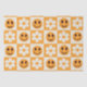 Il s'agit de mignonnes fleurs rétro et des visages souriants et heureux motif sur les damiers orange et blanc.