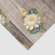 Des fleurs blanches et jaunes sur un arrière - plan de grains de bois vintage brun clair. Parfait pour l'artisanat, l'emballage et le découpage de cadeaux. Assurez-vous de retirer le sac cadeau correspondant!