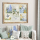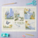 "Fleurs bleues Tournesols libellule de jardin français Collage d'artisanat de découpage Tissu Papier, poids lourd pour le découpage de meubles, peintures murales ou emballage cadeau." Il s'agit d'une série de peintures de style peintre qui ont été créées dans des pastels à l'huile. Fleurs et tournesols en Delphinium bleu élégant dans un collage avec des papillons bleus, des libellules et un oiseau dans un jardin de chalet. Toutes les oeuvres ont été peintes par Audrey Jeanne Roberts, artiste et designer de renommée internationale, copyright.