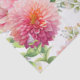 Pink Dahlia Flowers a deux belles fleurs Dahlia peintes en rose et violet et un petit bourgeon mignon. Les feuilles verts et les tiges avec de petites fleurs blanches agissent comme un accent dans l'image à motifs. Le seul regroupement de fleurs est grand et s'étend au-delà des bords.