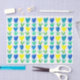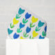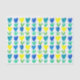 Un joli papier de tissu floral avec des rangées de fleurs de tulipe peintes dans plusieurs tons de bleu, dont le bleu royal et turquoise avec une tulipe jaune vif au centre. Fleurs gaies pour égayer votre cadeau de don!