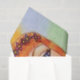 Cette image est tirée de mon dessin original au crayon couleur. Cette fée aux cheveux rouges aux ailes violettes tient son bouquet de fleurs printanières colorées. L'arrière - plan est un mélange de bleu, jaune et violet. Voir mon magasin pour d'autres produits avec ce design.
