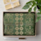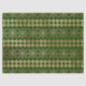 Rangées de motifs floraux abstraits reproduisant l'or flanqués de petits losanges reproduisant la même couleur or et le tout sur un arrière - plan vert profond. Parfait pour le découpage, l'artisanat ou l'emballage de cadeaux. Assurez-vous de retirer le sac cadeau correspondant!