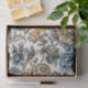 Exotique d'inspiration vintage boho fleurs bleues et or et feuilles sauge sur ecru arrière - plan.