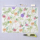 Ce papier Shabby Chic Floral Tissue présente des fleurs roses, des fleurs jaunes, des fleurs violettes et des fleurs rouges sur un champ de feuilles verts.