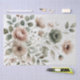 Papier de soie floral moderne aquarelle olive poussiéreux et rose