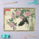 Papier Mousseline Fleurs roses roses & Découpage orientale d'oiseaux