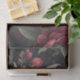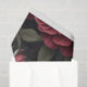 Une composition florale dramatique avec des fleurs rouges bordeaux et une verdure foncée, mêlant élégance gothique et tonalités botaniques riches et humides.