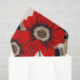 De grandes fleurs rouges et un arrière - plan plaid en noir et beige.