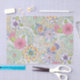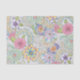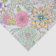 Ce papier tissulaire présente un ensemble de fleurs, chacune distincte dans sa forme et sa palette de couleurs, allant des violets et des bleus profonds aux oranges et jaunes animés. Ces fleurs sont reliées par un réseau de feuilles et de vignes verts délicats, créant un mélange harmonieux d'éléments naturels. Chaque fleur est méticuleusement détaillée, montrant une variété de motifs qui ajoutent profondeur et texture au design général. L'arrière - plan est gris clair, ce qui fait ressortir le design floral coloré. Il y a une touche artistique à la représentation ; elle ressemble à de l'art dessiné à la main avec un ombrage détaillé.