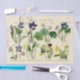 Un script vintage en français avec un cachet postal accompagne une sélection de violettes et de violons pour ce papier tissulaire du printemps.