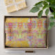 Un design floral est présenté dans cette oeuvre d'art mêlant médias et couleurs vives partout.