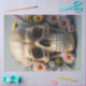 Papier Mousseline Floral skull cream white Steampunk v1 tissue paper