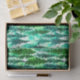 Papier tissulaire dans une aquarelle motif de pins dans une forêt de montagne, dans les tons vert pin moyen à foncé sur un arrière - plan doux, aquarelle