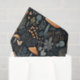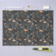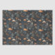Ce design fantaisiste présente des champignons de tabouret en terre cuite sur un arrière - plan bleu marine foncé avec baies de forêt et faune.
