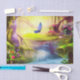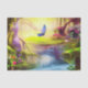 Ce papier tissulaire présente une forêt d'imaginaires avec cascade, papillon, oiseaux et maisons de fées. Utiliser comme sac cadeau ou remplissage de boîte cadeau ou pour un projet de découpage.