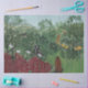 Ce dessin présente une peinture de l'artiste post-impressionniste français Henri Rousseau (1844-1910). Rousseau était connu sous le nom de "Le Douanier", qui signifie "l'agent des douanes", une description humoristique de son métier de percepteur de péages et d'impôts. Ce tableau présente un paysage tropical exotique. Il y a différents types de singes qui vivent dans la jungle et un serpent se cache dans l'herbe. La peinture originale a été achevée en 1910.