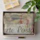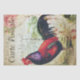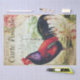 Coq rouge vif aux accents rose floral et timbres-poste français vintages. Le coq a un violet foncé, rouge et des morceaux de plumes de couleur verte avec le visage et le peigne rouge. Idéal pour une ferme rustique ou une ambiance champêtre, surtout en faisant de l'artisanat de découpage.