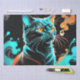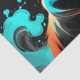 Des tourbillons de fumée orange et turquoise tournent autour d'un chat noir. Retro. Papier de tissu de découpage. Parfait pour les arts, l'artisanat, les cadeaux, la décolpage de meubles, la journalisation et les livres à grappes, etc.