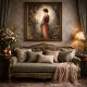 Une femme pré-Raphaélite en soie terre cuite se dresse au milieu de roses d'escalades. La composition met en balance les rideaux structurés et les éléments de jardin sauvages. Couleurs : Terracotta + Moss Green Antique Rose + Ardoise Gris Bronze + Jardin Vert Dusty Coral + Pierre Gris Russet + Sage Design Elements : Soies rapportées Jardins Roses Arches gothiques Lumière naturelle Costume d'époque Idéal Meubles : canapé victorien Jardin Bureau d'écriture Table d'habillage Bibliothèque chaise Idéal pour transformer des meubles romantiques , la lecture de livres, ou d'espaces célébrant l'esthétique victorienne.