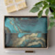 Élevez votre présentation de cadeaux avec cette feuille d'emballage sophistiquée et artistique. Ce design présente un motif abstrait envoûtant inspiré de la nature, ressemblant à une pierre d'agate turquoise tranchée ou à une géode minérale luxueuse. L'impression présente des couches tourbillonnantes de teintes de bleu profond, de bleu aqua et de cyan, élégamment accentuées par des veines de texture de feuille d'or fausse qui créent un effet de marbre liquide saisissant. Cette esthétique moderne et glamour est parfaite pour emballer des faveurs de mariage, des cadeaux de douche de mariée, des cadeaux d'anniversaire haut de gamme, ou pour une utilisation dans des projets de bricolage créatifs et de découpage. Veuillez noter : les détails dorés sont un effet d'impression de haute qualité, et non une feuille métallique réelle.