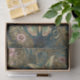 Enchanting gilded butterflies flutter among soft pink blossoms and delicate florals on a rich teal background. Ornate Art Nouveau scrollwork and vintage botanical details create an heirloom-quality design with antique elegance and nature-inspired charm. From the Art Nouveau Garden Collection by SusanDesigns Every Day.