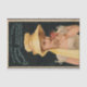 Victorian, Parker's Ginger Tonic carte de commerce publicitaire avec une femme joliment habillée portant une robe blanche antique, robe de printemps, bonnet jaune, et odeur de roses rouges. Arrière - plan noir avec texte bleu au-dessus de la femme.