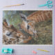 Cette image numérique captivante, intitulée "Savannah Bonding", présente une girafe mère et son jeune veau dans un champ ensoleillé. Le regard affectueux de la mère est fixé sur sa progéniture, assurant sa sécurité et la guidant à travers la haute herbe. Le veau, avec ses yeux innocents et ses traits délicats, se tient près de son protecteur, niché dans le confort de son ombre. Le décor de la savane est vivant avec le tourbillon des feuilles et le doux bourgeon du désert, qui incarne l’essence de l’existence de ces magnifiques créatures. Cette photographie témoigne de la relation d'épanouissement qui existe au sein de la famille des girafes, sur fond de maison majestueuse et naturelle.
